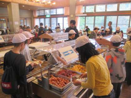 山の家の食堂でいただく食事もこれで最後です。今日は、ミートボールやポテトフライ、ゆでたまごなどがありました。とてもおいしい食事を作ってくださった食堂の皆様、ありがとうございました。