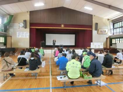 美化キャンペー後,出前講座「健康長寿のまち・金閣」を,本校の講堂で行いました。