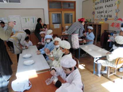 劇の中で登場するおにぎりとたこウインナーをみんなで作って食べました。とてもかわいいおにぎりとたこウインナーができて,みんな嬉しそうでした!本番まであと少し!力を合わせてがんばっていきます!