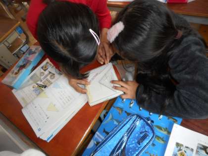 三角定規で教室(身近にあるもの)の中から,直角や長方形,正方形を探す活動をしました。