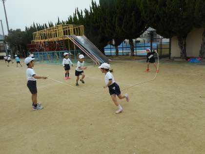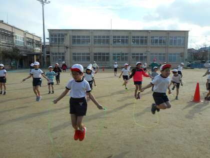 3学期に入って,体育では「短なわ」と「ゆっくりかけ足」の学習を始めました。長なわにも挑戦しています。
