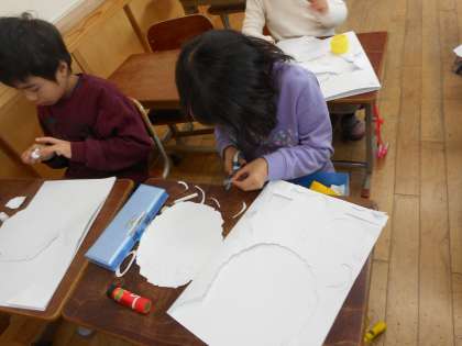 授業参観(1月)で道徳「泣いた赤おに」の学習をしました。来週は2月に入って節分を迎えるということも合わせて,このたびの紙版画のテーマを「鬼(おに)」としました。
