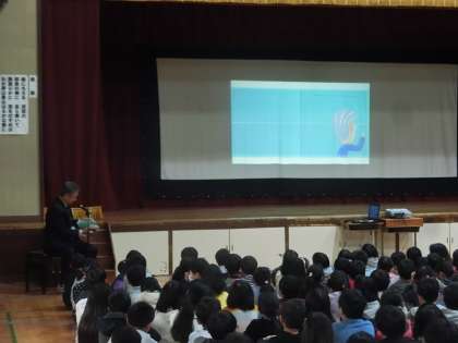 2月に入りました。1時間目に朝会をしました。今日も校長先生が絵本の読み聞かせをしてくださいました。