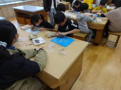 本日,金閣おやじ・お母さんの会主催の,陶芸教室が開催されました。立命館大学陶芸部の皆さんもお手伝いに来てくださり,たくさんの児童や保護者の方が陶芸に挑戦しました。