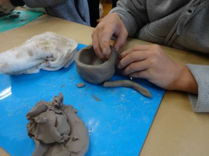 なかなかの力作がたくさんできました。このあと,窯で焼いていただきます。完成が楽しみです!