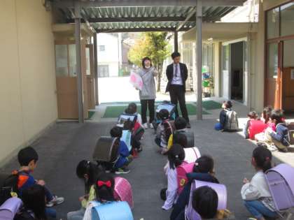 小学校生活1日め,とっても緊張して,とっても疲れたと思います。よく頑張りました。コースごとにわかれて,先生たちと一緒に1年生は下校します。いいお天気でよかったです。明日からお休みになってしまいますが,次に学校にくる日まで,元気ですごしてくださいね。