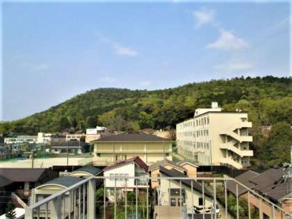 上の写真は,西の方角に見える衣笠山,真ん中の写真は,北の方角に見える大北山,下の写真は,南の方角にうっすらと見えている京都タワーです。