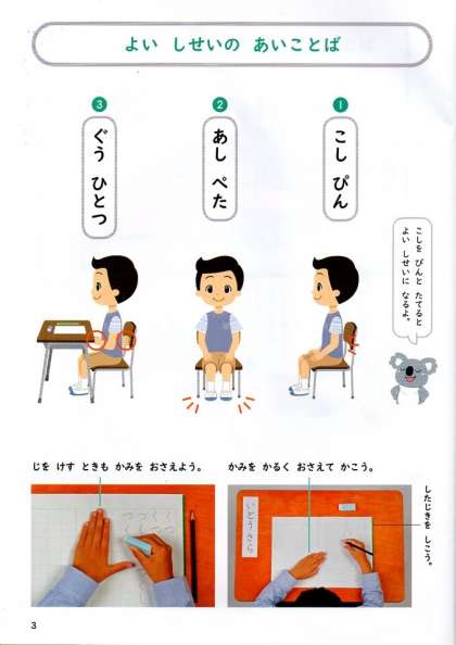 さあ みなさんは じを かくときの しせいを しっていますか。