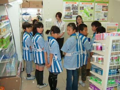 ローソンのブースでは,ノートや鉛筆などの販売と商品陳列の工夫などがんばっていました。