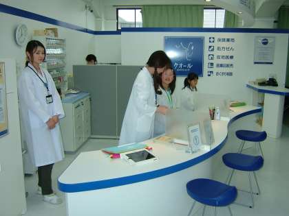 クオール薬局のブースでは,調剤や薬包についての体験に加えて,ipadを使って健康についての説明をしていました。新しいブースで清潔感いっぱいの店舗でした。