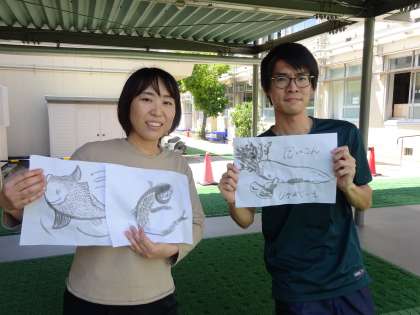 先生たちも,『墨の濃さ』や『水の量』を考えながら頑張って描いてみました。