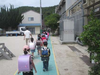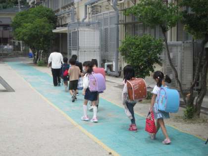 1年生の下校は,始業式の次の日以来です。12日(金)までは,先生と一緒に帰ります。雨が降らなくて本当によかったです。明日からも元気に学校に来てくださいね。