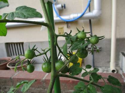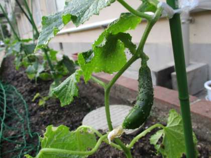 にじの子ガーデンに植えた野菜が,大きくなってきました。葉っぱの間からのぞいてみると,小さなかわいい実がなっていました。