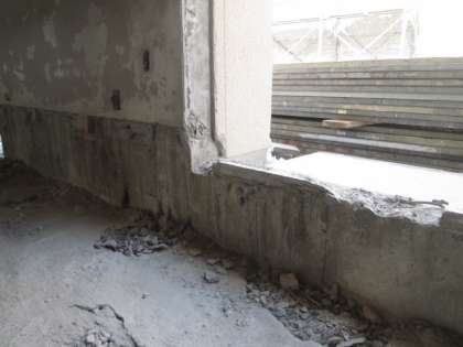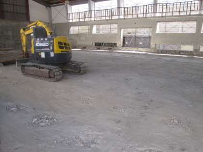 講堂の工事の様子 床がなくなっています