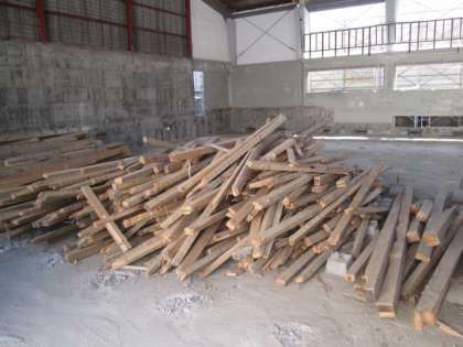 講堂の床をはがす工事が終わったので,お願いして中を見せていただきました。床の下にはコンクリートが敷き詰められていました。床下が50センチぐらいあったこともわかります。次は,いよいよ屋根をはがす工事の準備に入られるそうです。