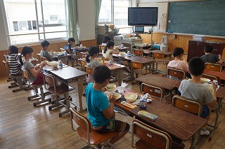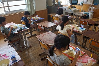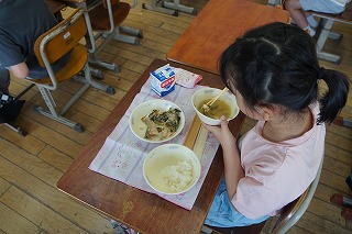 楽しみにしていた給食が始まってとても嬉しそうな子どもたちです。学校がはじまって疲れが出てくる頃かもしれませんが,給食を食べた後の子どもたちは表情がとても明るくなっていました。