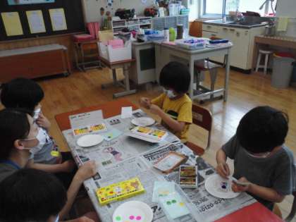 にじの子 い・ろ組 おさらで ドミノを 作ろう