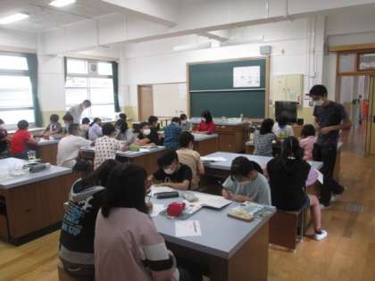 理科の時間に,ジャガイモの葉を使って,養分について調べています。葉を熱いお湯につけて,そのあとにヨウ素液を使って,葉で養分が作られているかどうかを確かめます。アルミホイルで包んで日光に当てなかった葉と,日光に当てていた葉とでは,違いがあるのでしょうか。子どもたちの実験・観察する様子も6年生らしい,真剣な眼差しです。