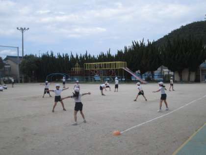 体育の時間は,マスクをはずしていますが,どうしても子どもたちが近づいてしまいやすいので,気をつけながら学習を進めています。