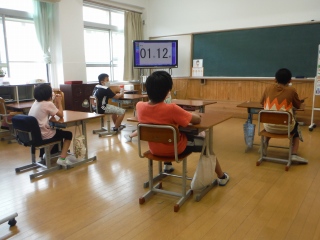 昼学習で,かけ算リレーに取り組んでいます。順に答えを言っていきます。目標タイムを決めて取り組んでいますが,毎日少しずつタイムが短くなっていき,子ども達自身もびっくりしています。昨日より何秒,目標タイムを縮めるか相談し・・・どきどきしながら取り組んでいます。達成できると歓声があがり,思わずガッツポーズで立ち上がったり・・。どこまで短くなるのかな?チームワーク,ばっちりです。