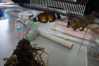 ツマグロヒョウモンの幼虫を飼いはじめてから,成長を見守ってきました。い組もろ組も,無事に成虫になりました。「また会えるといいね」「良い旅にしてね」と,飛び立つ前にやさしい声をかけていました。