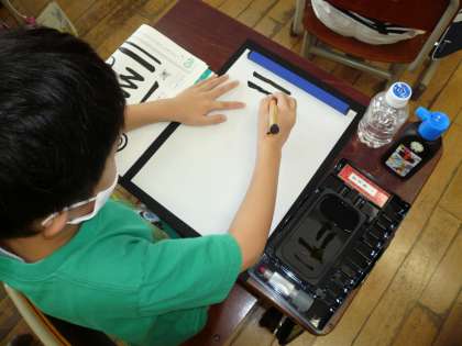 初めて筆を使ってみて,「難しかったけど楽しかった!」という感想がたくさん聞かれました。