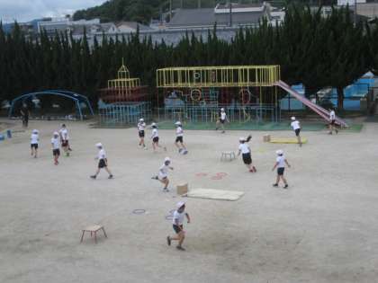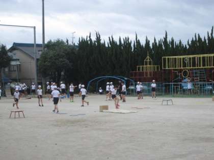 講堂の工事をしていただいているため,今は,講堂で体育の学習ができません。しばらくの間,ずっと雨の日が続いていたので,子どもたちが外で体育の学習をすることができるのは久しぶりです。子どもたちにとって,体を動かすことはとても大切であると同時に,とても楽しい時間です。運動場から,楽しそうな声が聞こえてきます。
