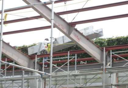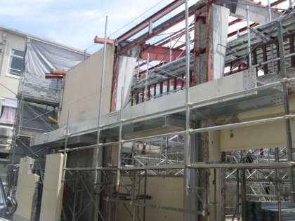 講堂の工事の様子〜鉄骨が取り付けられています〜