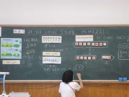 1年生の子どもたちにとっては,はじめて出会う計算です。たしざんとともに,夏休みも使ってしっかりとおさらいしながら学んでいってほしいです。