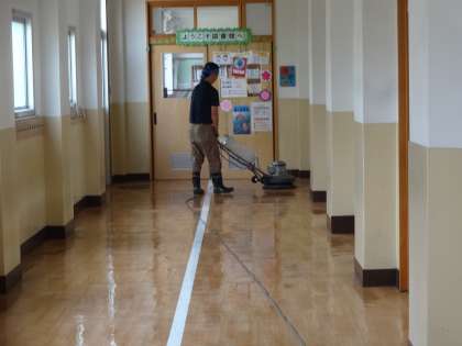 本日6日,明日7日の2日間で,北校舎廊下の床を磨いて再度コーティングする作業をしていただいています。