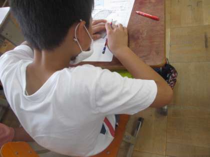 三角定規や分度器,コンパスを使って,垂直に交わる直線や平行な直線を引いたり,それを使って平行四辺形・ひし形・台形等の図形をかく学習をしています。なかなか難しい学習ですが,何度も練習して,少しずつ上達していきましょう。