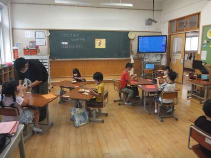子どもたちは,とても真剣に和紙をちぎっていました。