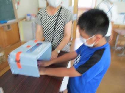 今日は保健の学習で,手の汚れが目に見える実験をしました。実験用の液体を手に塗ってから,いつもと同じように手を洗って,ブラックライトで照らして見てみると・・・?「つめの辺りが汚れている!」「指の間が洗えていないな。」「しっかり手を洗ったはずやのに。」と驚いた様子の子どもたちでした。これからは,隅々までしっかり手洗いをしましょうね。