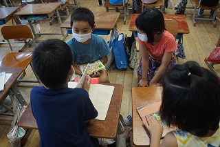 2年い組では,お気に入りの本を紹介し合っていました。とても楽しそうに自分のお気に入りの本を紹介していました。