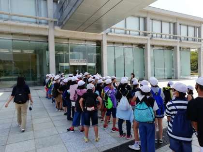 平和記念資料館に移動しました。これから見学を始めます。事前学習で学んできたことをもとに,さらに学びを深めます。