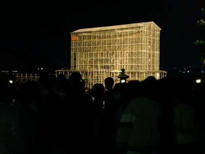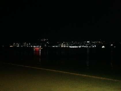 夕食後,夜の散策に出かけました。明日のお土産買い物をする宮島商店街を下見したり,厳島神社のライトアップを見たりしました。残念ながら,鳥居は改修中でした。