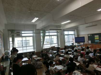 今日の3時間目は3年い組の国語科の授業を参観しました。実習生が,指導者の発問の仕方,指示の出し方,子どもたちの様子など,熱心にメモを取る様子が見られました。