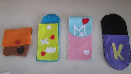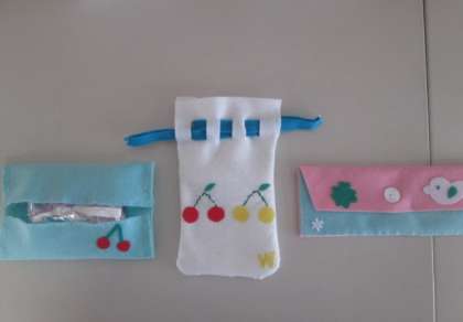 家庭科の時間に作った作品が,教室の後ろに並んでいます。学習した縫い方を使って丁寧に仕上げられた作品が多いです。ボタンやアップリケのついている作品もあります。今回の学習を活かして,他にも生活に役立つ作品を作ってみてほしいです。