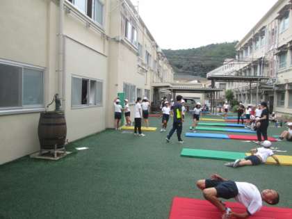 開脚後転,倒立前転,頭はね跳びなど,自分のめあてに向かって活動を進めています。あと少しでできそうな人もたくさんいます。けがをしないように気をつけながら,技ができるようになったときの達成感を味わえるよう,頑張っています。