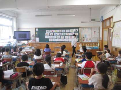 今日は,ALTのメリッサ先生が,金閣小学校に来てくださっています。2時間目は,3年生の教室で,担任の先生と一緒に学習を進めてくださいました。好きなものや好きな色等をたずね合う学習です。子どもたちは,リズムに合わせて,とても楽しそうに英語の表現に慣れ親しんでいます。