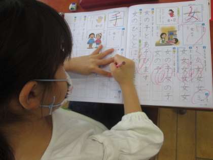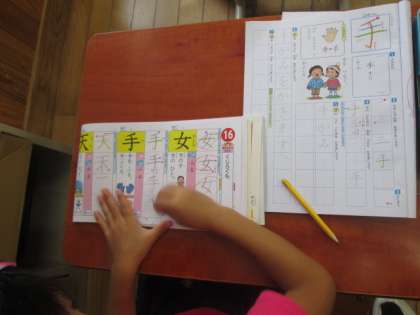 今日は,「手」という漢字の学習をしています。一から十までの漢数字も覚えて,これからは少しずつ画数の多い,字画のとりにくい字の学習へ進んでいきます。しっかり学んで,マスターしていってほしいです。
