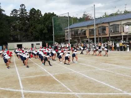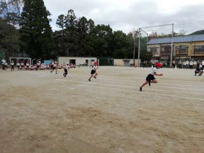 2時間目は3年生でした。準備運動をした後,80m走を行いました。