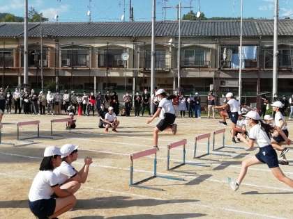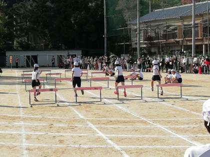最後の7時間目は,6年生です。100m走と,ハードル走を行いました。