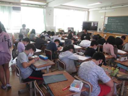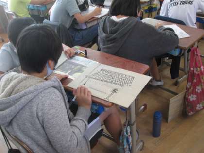 この間,わら天神に行ってスケッチをしてきた下絵を,カーボン紙を使って板に写しています。次の時間から,いよいよ彫刻刀を使って彫っていきます。例年の写生とは違う,迫力のあるわら天神の作品になりそうです。