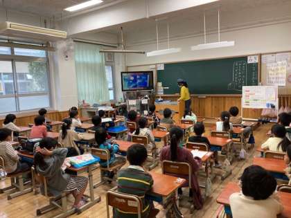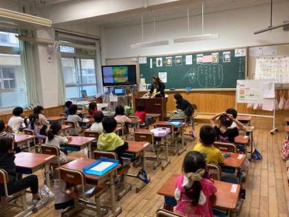 本日1時間目に,PTA図書サークルの皆様が,1年生とにじの子学級の児童に向けて,絵本の読み聞かせをしてくださいました。
