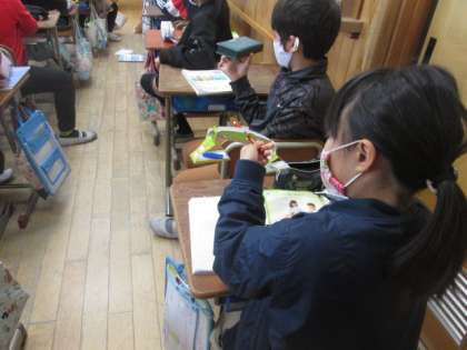 秤を使うことによって物の重さを正確に測れることを知り,いろいろなものの重さを単位や計器を選んで適切に測ることができるようになるための学習です。今日は,教科書の巻末についている「てんびん」を作って,身のまわりのいろいろなものの重さ比べをしました。