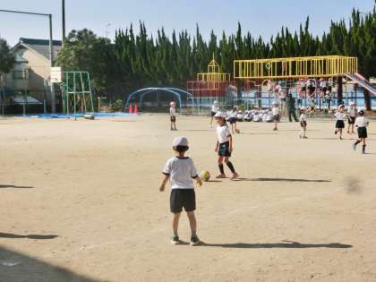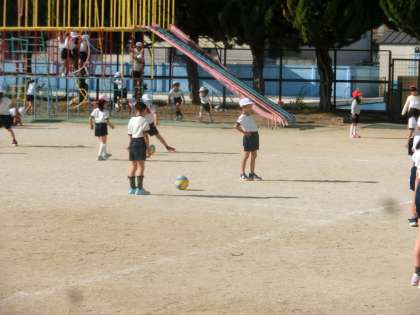 遊具遊びと合わせて,ボールけりゲームもしました。今日はボールに触れ,慣れることが目的でゲームはしていません。