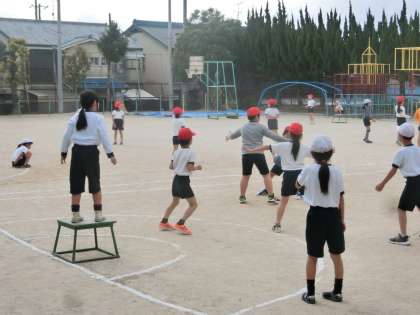 3年生の体育で,ポートボールに取り組んでいます。ルールにも慣れてきて,子どもたちは作戦を立てながらとても楽しんでいます。