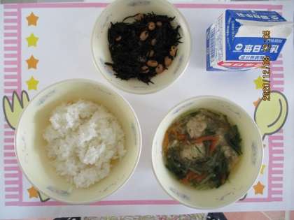 かむと口の中でふわっとくずれる手作りのつみれ団子のやわらかな食感と,水菜のシャキシャキした歯ごたえが味わえる,おいしくホッとする献立でした♪
