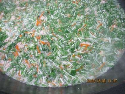 「水菜とつみれのはりはり鍋」は,まぐろ水煮・鶏ひき肉・細ネギ・しょうが・調味料を混ぜ合わせ,給食室で一つ一つ,つみれ団子を作ります。はりはり鍋の「はりはり」とは,水菜のシャキシャキした食感を表していると言われています。